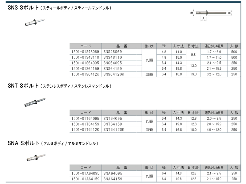 Sボルト SNA アルミ/アルミ