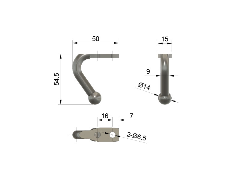 • 寸法:Φ9×54.5×50 2-Φ6.5穴付